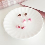 3色のピンクを組み合わせた耳飾りは、ダイニングテーブルを明るくしてくれるコスモスのアレンジメントのよう。