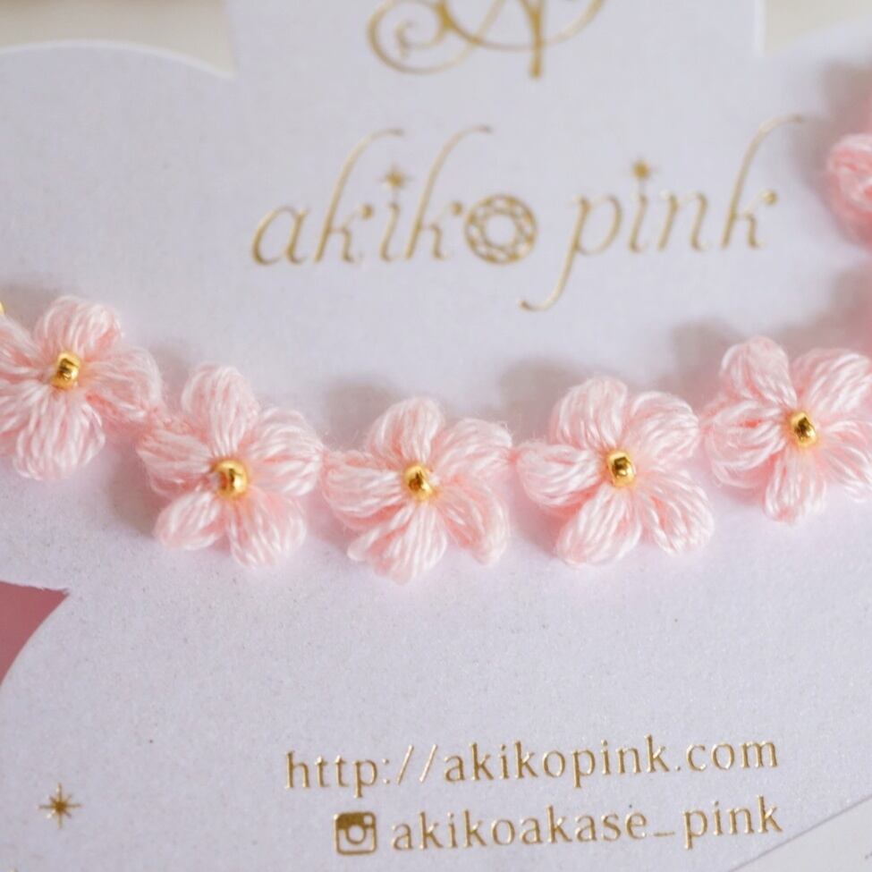 刺繍糸で編まれたふんわりお花が6つ連なったネックレスです。